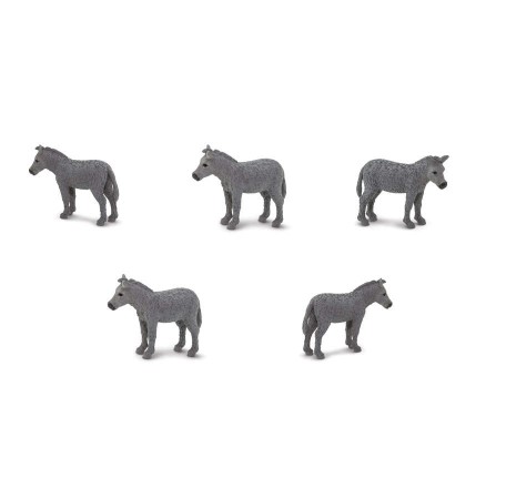 Deze kleine grijze ezels zijn goed te gebruiken in onze speelflesjes. Ze zijn van het merk Safari Ltd en worden ook wel geluk mini’s genoemd.